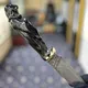 - Нож Добра, изготовленный из бивня мамонта и дамасской стали, украшен сверкающими топазами и агатом – воплощением света и надежды.